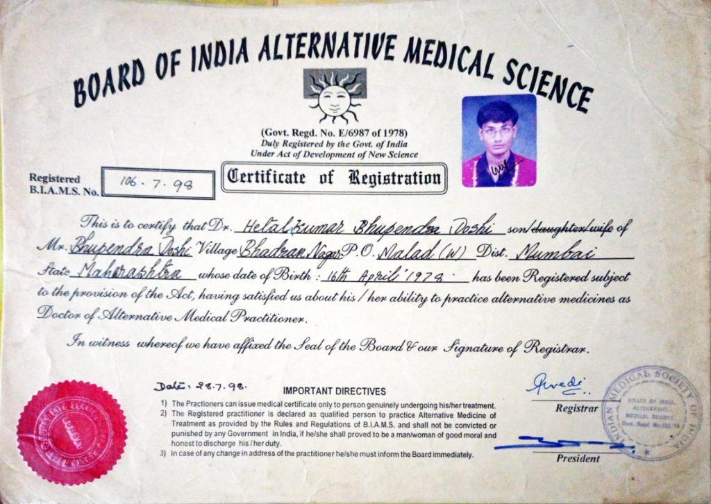 Dr Hetalkumar Doshi has started his career in Holistic Healing Science from a very small age of 14 and has more than 30+ years of experience and mastered and practicing more than 60 + therapies.